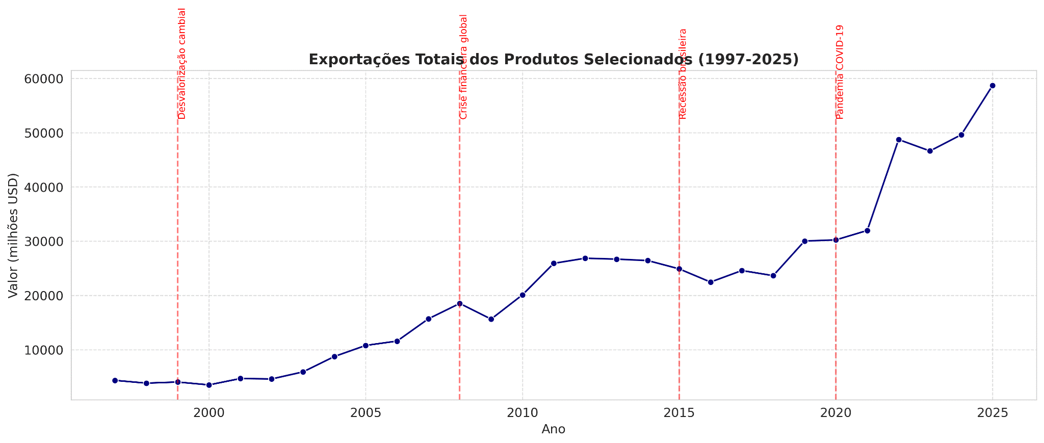 Figura 1 – Evolução das exportações totais 1997–2025
