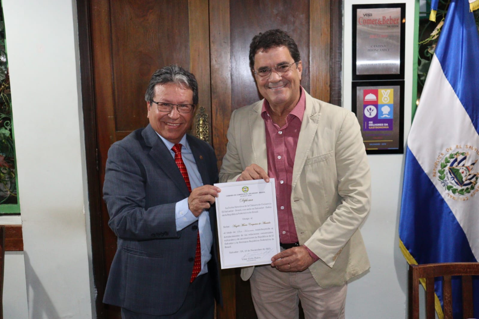 da Câmara de Comércio de El Salvador e ser empossado como membro da